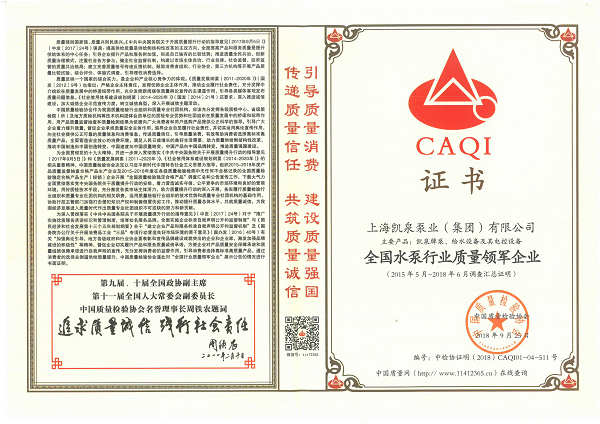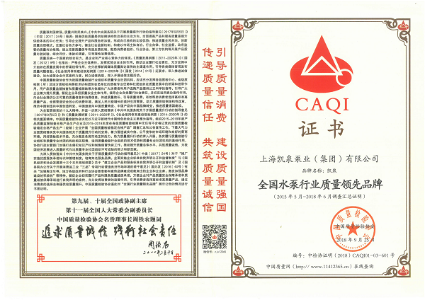必赢品牌被评为“全国水泵行业质量领先品牌”