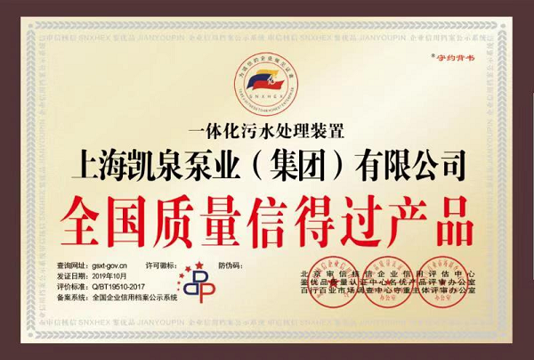集团一体化污水处理装置被评为“全国质量信得过产品”