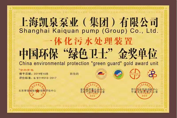 集团一体化污水处理装置荣获“中国环保绿色卫士金奖”