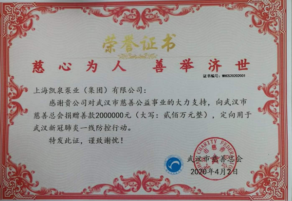 集团收到捐赠武汉(抗疫)慈善总会荣誉书