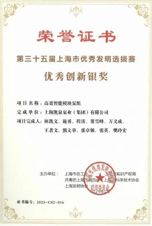 KQDP_SF系列交流伺服恒压泵荣获_2010第五届中国国际流体机械展览会_金奖313