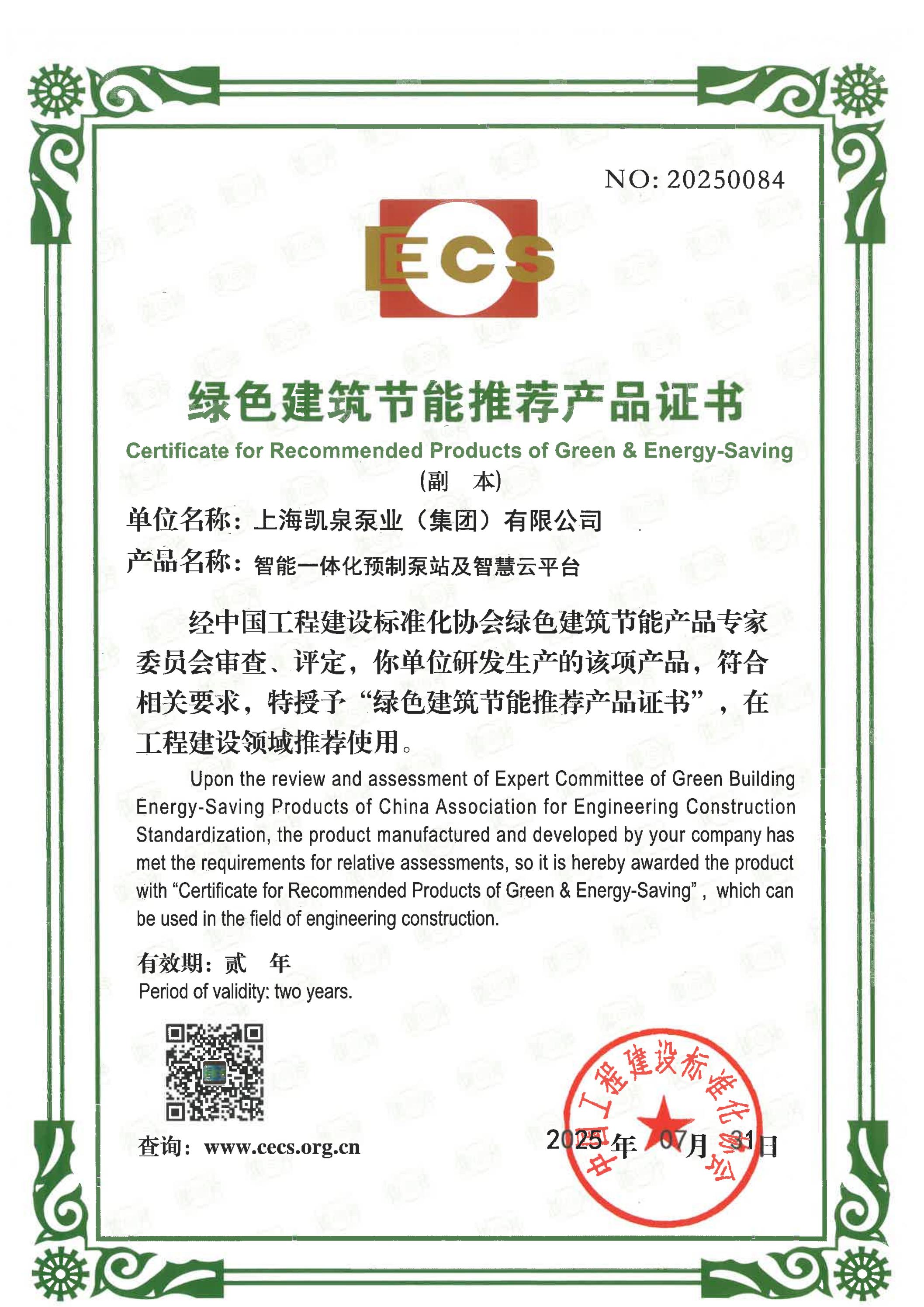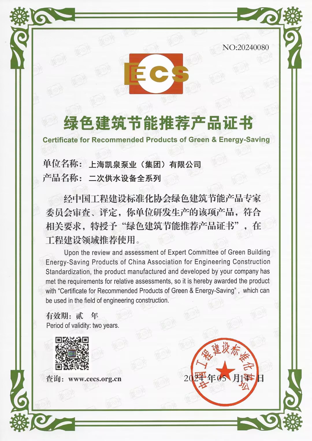 集团二次供水设备全系列荣获工程建设推荐产品证书